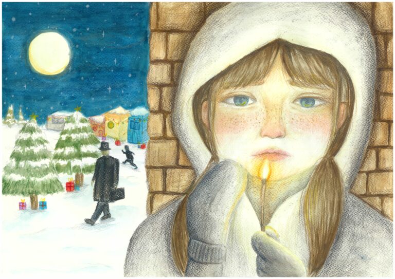 My drawing explores themes of warmth and hope amid darkness. The little girl holding the candle embodies resilience and inner strength, casting light in a desolate landscape. Although the story suggests the girl departed, it serves as a reminder that in the quiet periods of struggle, we can still seek solace and comfort in the darkest time of our lives.